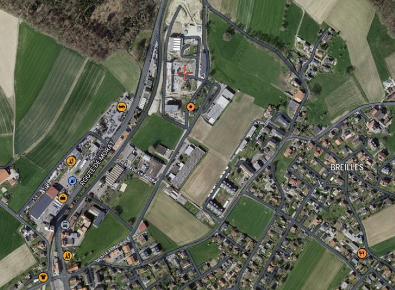 Le bâtiment se situe à exactement vingt minutes en trans- ports publics depuis la gare de Fribourg. Implanté à proximité de la route cantonale, il est situé sur site industriel Le Vivier, parc technologique développé à Villaz-St-Pierre, dans le district de la Glâne. La présence d’entreprises et de start-up accentuera ainsi son rôle de vitrine du savoir-faire des entreprises du canton de Fribourg.