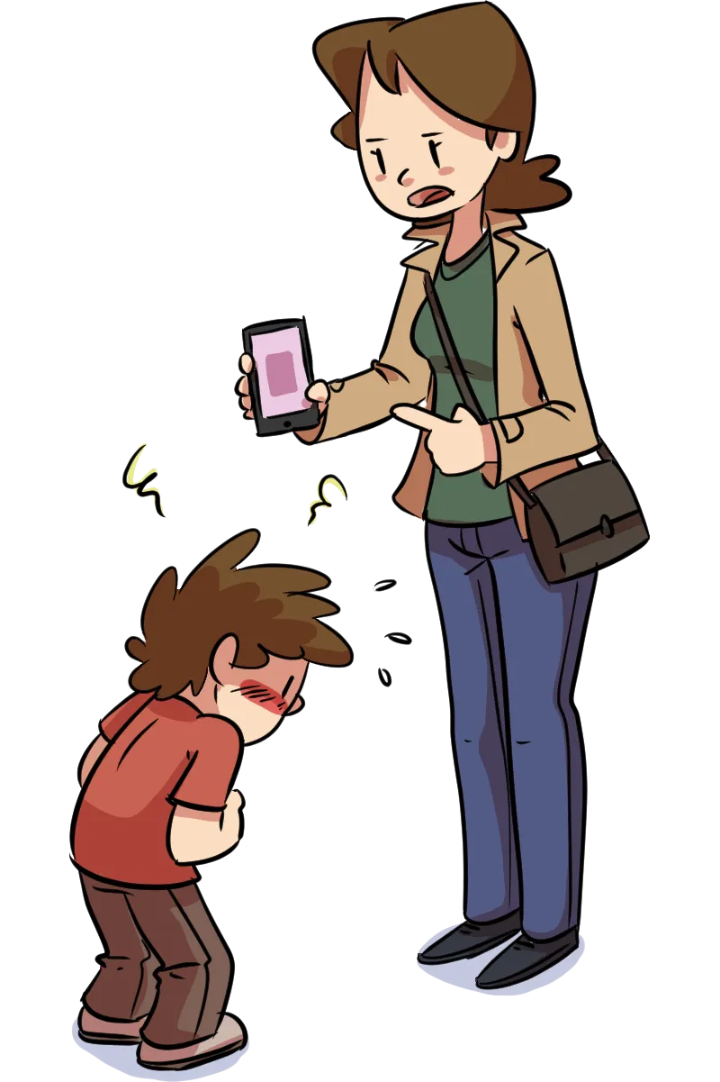 Les enfants peuvent être confrontés à des contenus préjudiciables. Cela peut aller de l'information écrite (sites racistes ou haineux) à des images toxiques (pornographie, violence, etc.). Il est important que les enfants puissent pouvoir en parler à un adulte de confiance. Source