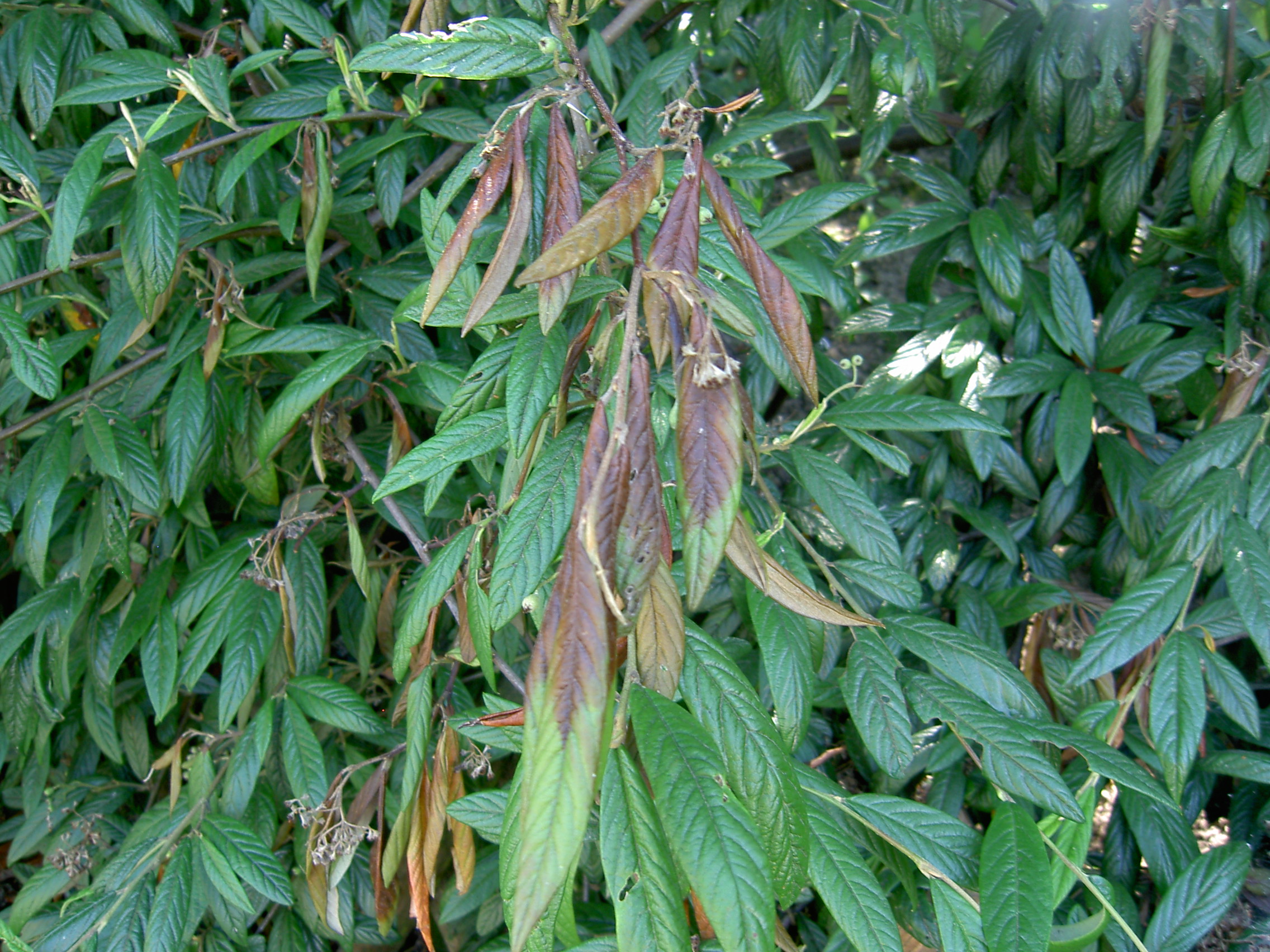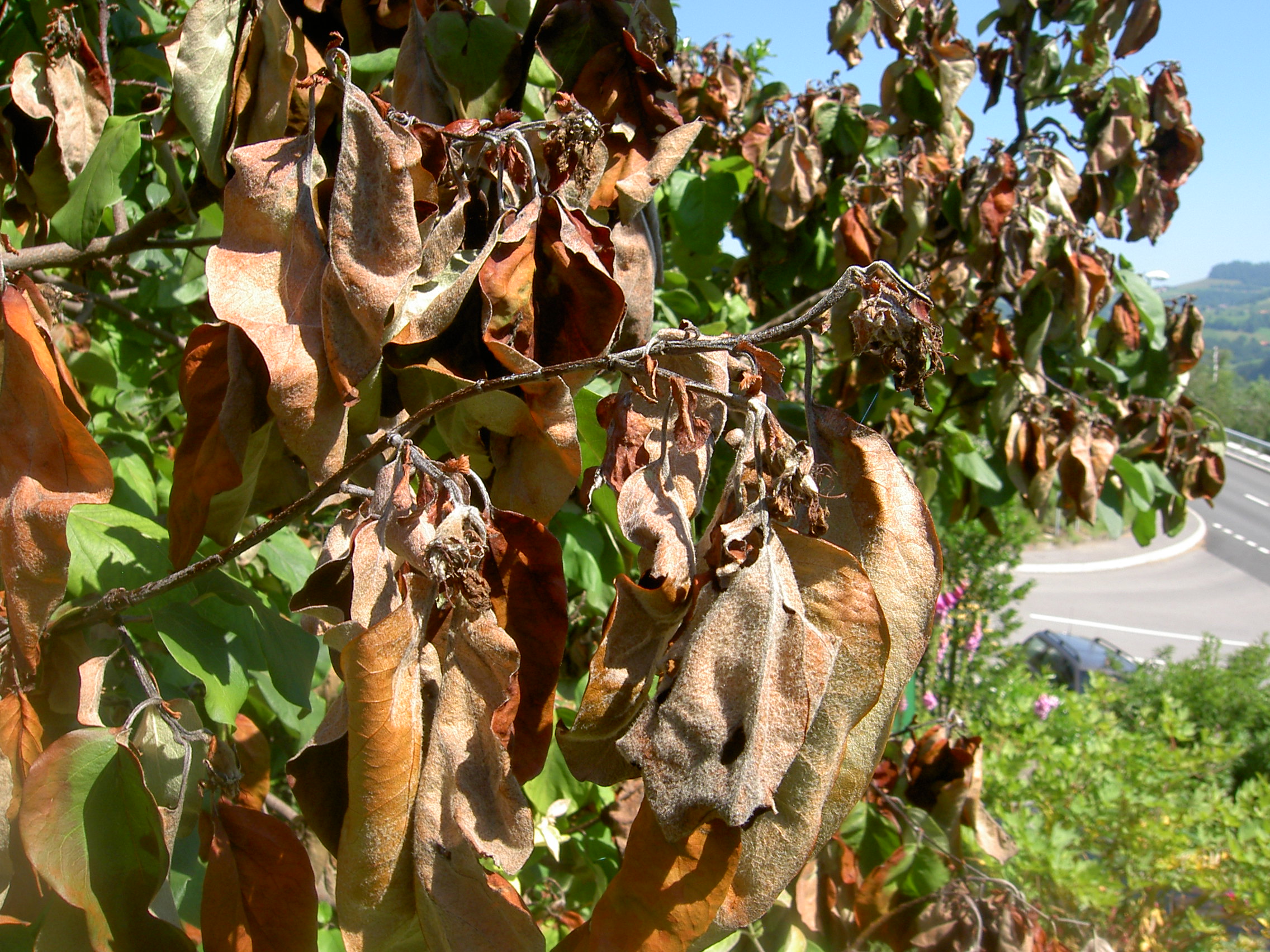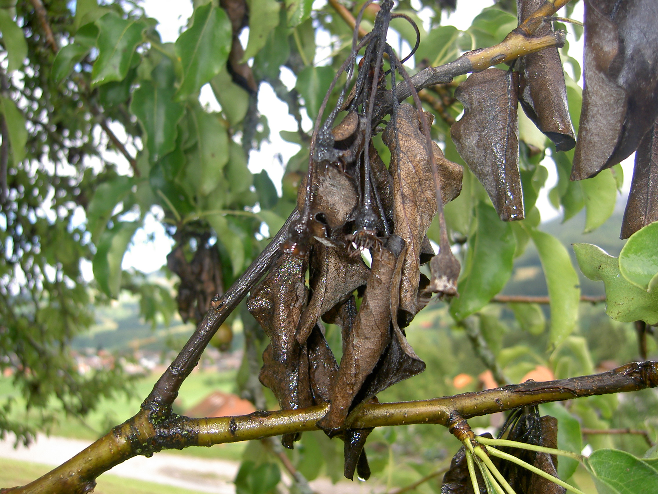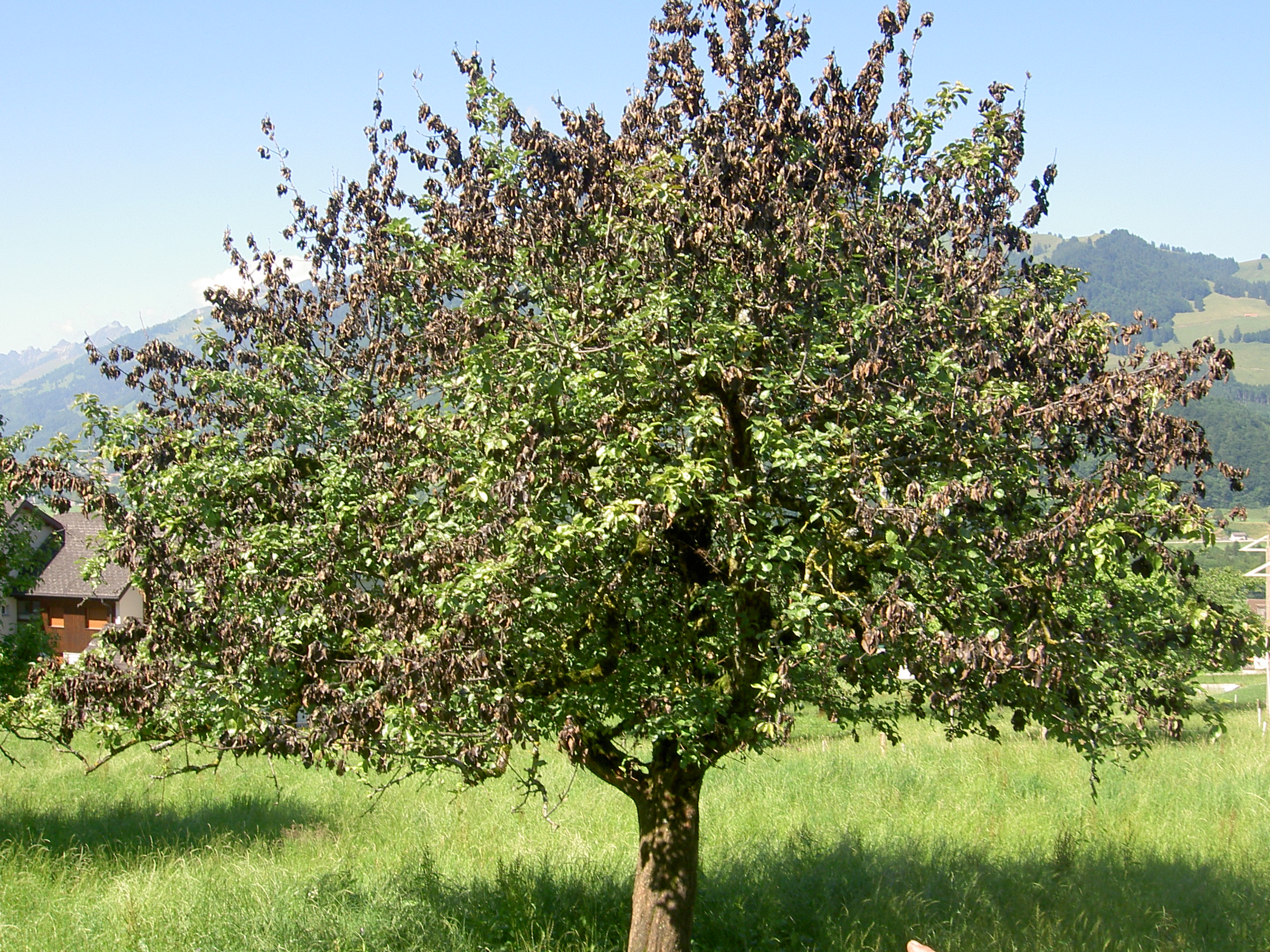 Le feu bactérien est une maladie particulièrement dangereuse pour quelques espèces botaniques, telles que l’aubépine, le cognassier, le Cotoneaster Dammeri, le Cotoneaster Salicifolius, le poirier et le pommier. Toute plante suspecte doit être annoncée au Service phytosanitaire cantonal.