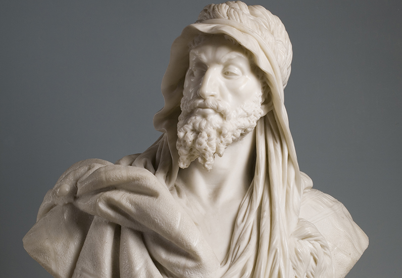 Voici l’Orient rêvé d’Adèle d’Affry qui réalise sa carrière de sculptrice à Paris, sous le nom de Marcello. Un homme mystérieux, rencontré à Rome, pose pour elle dans son atelier et se transforme en chef abyssin au regard fier. L’œuvre témoigne du goût de l’ailleurs du XIXe s.