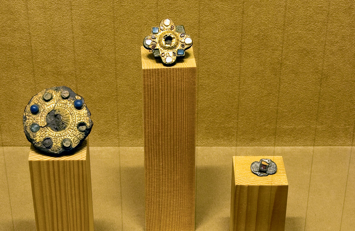 Créée en 1828, la Société des Antiques initia les fouilles archéologiques en terre fribourgeoise au cours du XIXe siècle. Par les dons de ses membres, léguant des séries d’objets préhistoriques et des artefacts lacustres mais aussi des objets de l’âge du fer et des antiquités romaines et « barbares » (du haut Moyen Age), elle est à l’origine des collections cantonales. Vers 1870 commença la recherche archéologique sur les stations lacustres des lacs de Neuchâtel et de Morat ; les fouilles se sont poursuivies depuis la création du Service archéologique cantonal par Hanni Schwab en 1967. Les objets exposés, qui vont de la préhistoire (mésolithique) au haut Moyen Age, couvrent une durée de 17 siècles ! Nos devanciers déposaient dans les tombes des armes, des récipients, des outils et des aliments, et munissaient les défunts de leurs plus beaux bijoux. On parait non seulement les bras et les jambes de bracelets, de bagues et d’anneaux de cheville, mais aussi le cou et la tête de colliers, pendeloques, perles, torques, diadèmes et boucles d’oreille. Le bijou – également porté par les hommes – était un symbole de prestige, qui se transmettait souvent de génération en génération, en même temps qu’un objet à connotation sentimentale. Réalisé sur la dent d’un gibier prestigieux, abattu par un chasseur mésolithique, il pouvait aussi faire office de talisman. Les épingles, fibules et broches, au-delà de leurs fonctions pratiques, étaient des bijoux sujets aux modes vestimentaires. De la protohistoire au haut Moyen Age, hommes et femmes portaient volontiers des garnitures de ceinture à décoration apotropaïque : motifs géométriques dans la protohistoire, bestiaire fantastique sur les plaques-boucles mérovingiennes. Les matières premières étaient choisies pour leur rareté, leur caractère précieux et leur couleur : pierres, coquillages marins, ambre et corail, lignite, os et bois de cerf, et bien sûr, cuivre, or et argent. Les statuettes de divinités gallo-romaines découvertes dans le canton proviennent soit d’autels domestique (laraires) ou de temples, soit de sites naturels (source ou étang). |