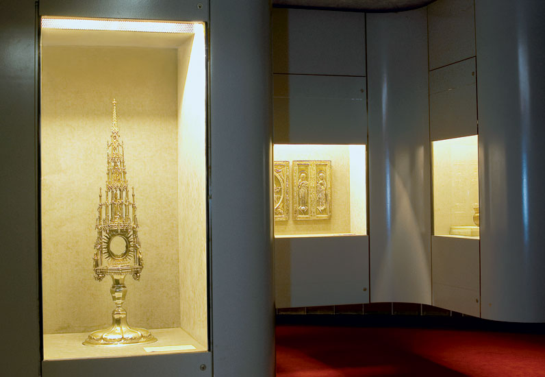Vases sacrés ou objets de luxe! L’orfèvrerie, ou l’art de mettre en œuvre les métaux précieux, se divise traditionnellement en deux grandes catégories, religieuse et profane. Le pays de Fribourg, demeuré catholique au milieu de territoires devenus protestants, eut besoin de très nombreux objets liturgiques pour fournir ses églises, chapelles et couvents. A de rares exceptions près, les œuvres médiévales furent progressivement fondues et remplacées, à partir du XVIIe siècle, par des pièces plus modernes, conformes aux nouvelles prescriptions liturgiques et aux exigences esthétiques du style baroque. Ainsi, l’ostensoir qui avait l’aspect d’une tour à l’époque gothique prit la forme d’un retable puis d’un soleil. Les ostensoirs, les reliquaires, les statues ou les croix étaient visibles sur les autels, à la lueur des chandeliers, mais souvent ils étaient portés en procession, brillants à la lumière du jour, au milieu de la foule. Captant l’attention des fidèles, ils étaient le symbole du caractère sacré de l’événement liturgique. Sauf lors des grands banquets officiels, où l’on montait un buffet exposant des pièces d’apparat, l’orfèvrerie civile n’avait pas à Fribourg le côté ostentatoire de l’orfèvrerie d’église. Les pièces profanes étaient avant tout domestiques et faisaient la fierté des familles patriciennes et des familles bourgeoises aisées. Au XVIIIe siècle, les grands vases à boire le vin (gobelets, coupes et hanaps) n’avaient plus leur place à domicile ; on leur préférait les récipients conçus pour les nouvelles boissons à la mode : cafetières, théières ou chocolatières. Mentionnés dès le XIVe siècle, les orfèvres n’ont jamais été plus de six ou huit à Fribourg. Trop peu nombreux pour former une corporation, ils faisaient généralement partie de celle des marchands. Dès le XVe siècle, la production locale fut marquée d’un poinçon indiquant le nom ou les initiales du maître, tandis que le poinçon de ville n’apparut qu’au tout début du XVIIe siècle. Il représentait trois tours, comme le sceau officiel de la ville. Dès la fin du XVIIIe siècle, ce poinçon fut petit à petit remplacé par un écu évoquant le noir et le blanc, qui devint alors les armes du canton. L’orfèvrerie locale cependant, inadaptée à la nouvelle situation du marché, disparut presque entièrement vers le milieu du XIXe siècle. |