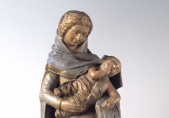Les œuvres les plus anciennes dans la collection du Musée relèvent de styles assez hétérogènes. Plus elles sont anciennes, moins il est facile de les apparenter et de les classer en catégories stylistiques. Il ne faut pas incriminer à cet égard que les pertes dues au temps écoulé: car il fallut sans doute attendre les années 1500 pour voir à Fribourg même une production plastique d'un certain volume. Le fait majeur, c'est que les artistes des XIIIe et XIVe siècles se déplaçaient sur de grandes distances, au gré du travail qu'ils trouvaient dans les villes et les couvents, car c'est là surtout qu'on édifiait des bâtiments richement décorés. Peintres, sculpteurs et constructeurs diffusaient ainsi dans un large espace les caractères typiques de leur région d'origine. Et comme Fribourg est située au point de rencontre de deux aires artistiques importantes: la Bourgogne sous influence française et le Rhin supérieur de sensibilité germanique, les deux cultures ont marqué profondément l'art fribourgeois du Moyen-Age.