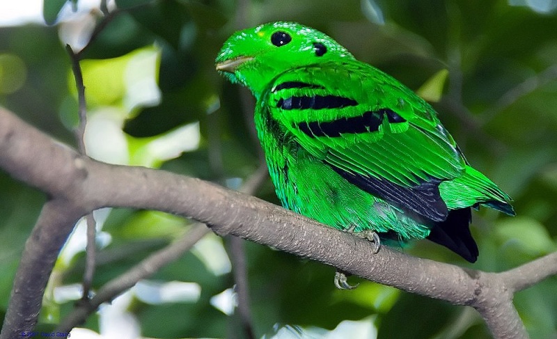 - Habitudes d’accouplement : Les Eurylaimes vert mâles effectuent une parade nuptiale tournoyante. Pendant la saison des amours, les femelles tissent un long nid tubulaire à partir d’herbe.