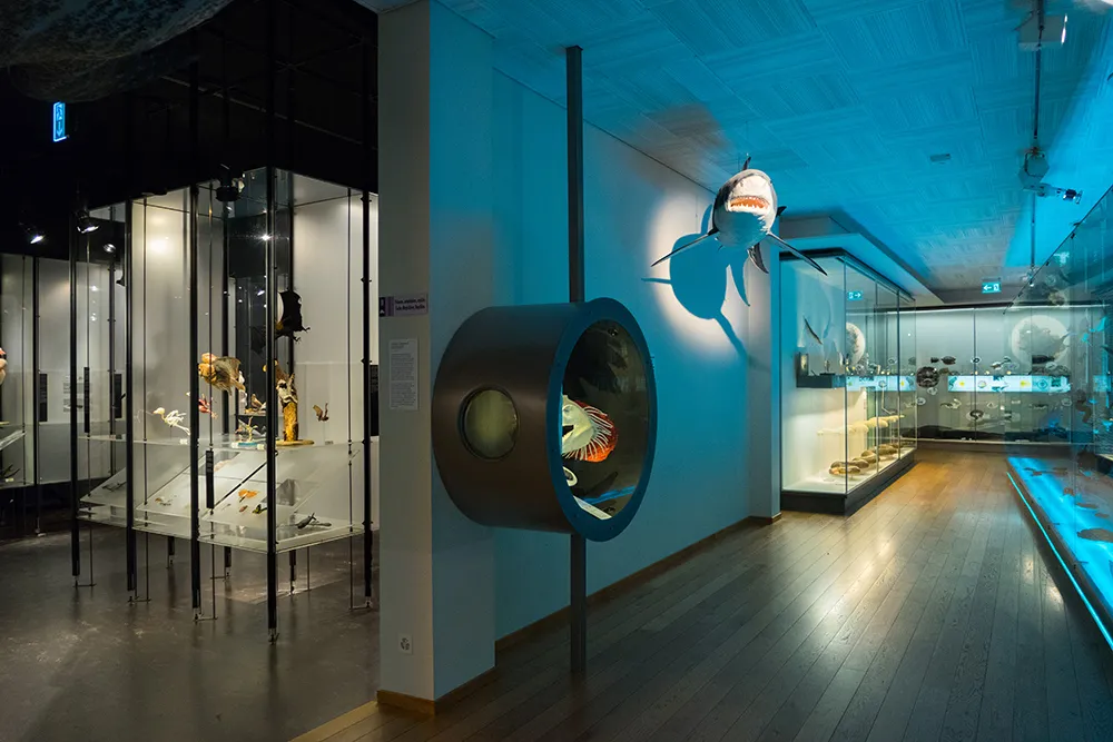 La diversité des espèces sur notre planète: émerveillez-vous devant la célèbre baleine naturalisée du musée et les vertébrés des cinq continents.
