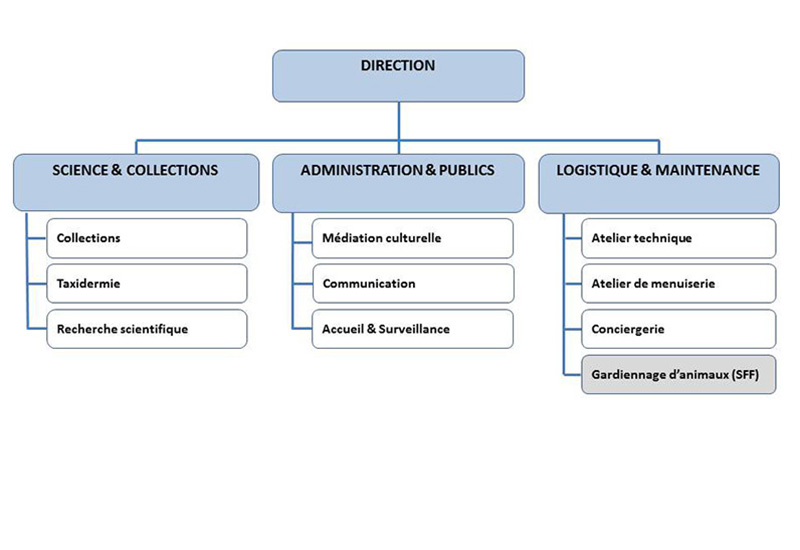 Le MHNF est une institution culturelle de l’Etat de Fribourg. Il est rattaché au Service de la culture, organe dépendant de la Direction de la formation et des affaires culturelles (DFAC). Le Musée d'histoire naturelle est composé de trois sections.