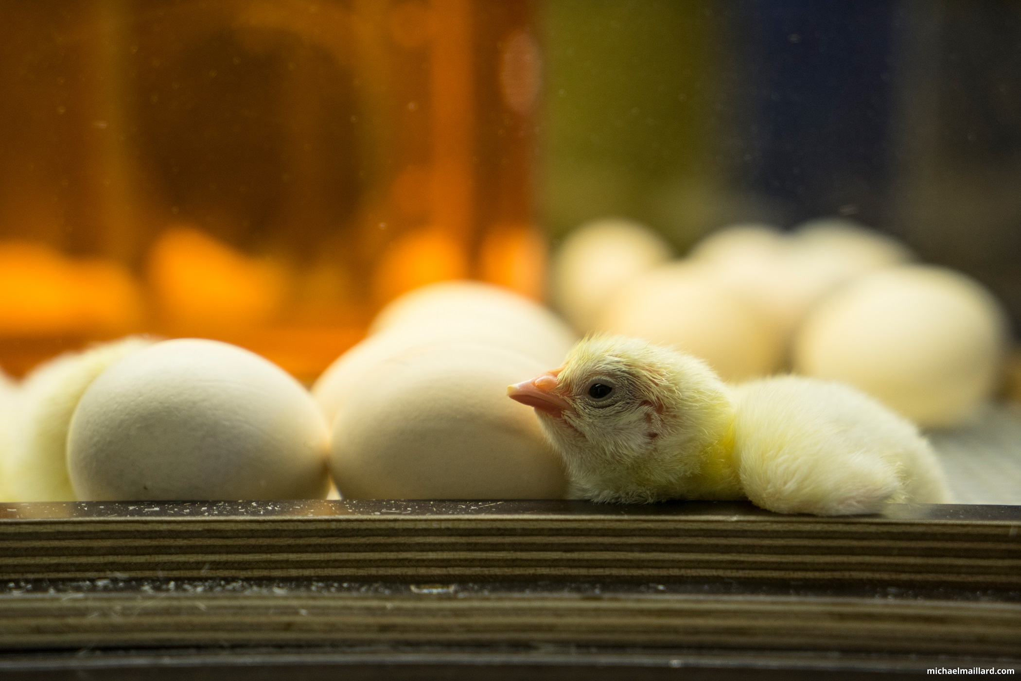 Que les puristes se rassurent toutefois ! Malgré la diversité des oeufs et des animaux qui les pondent, dans les couveuses du Musée, quand une coquille bouge, se fendille, se craque et s’ouvre, c’est toujours un poussin qui en sort : un moment d’émotion et d’émerveillement.