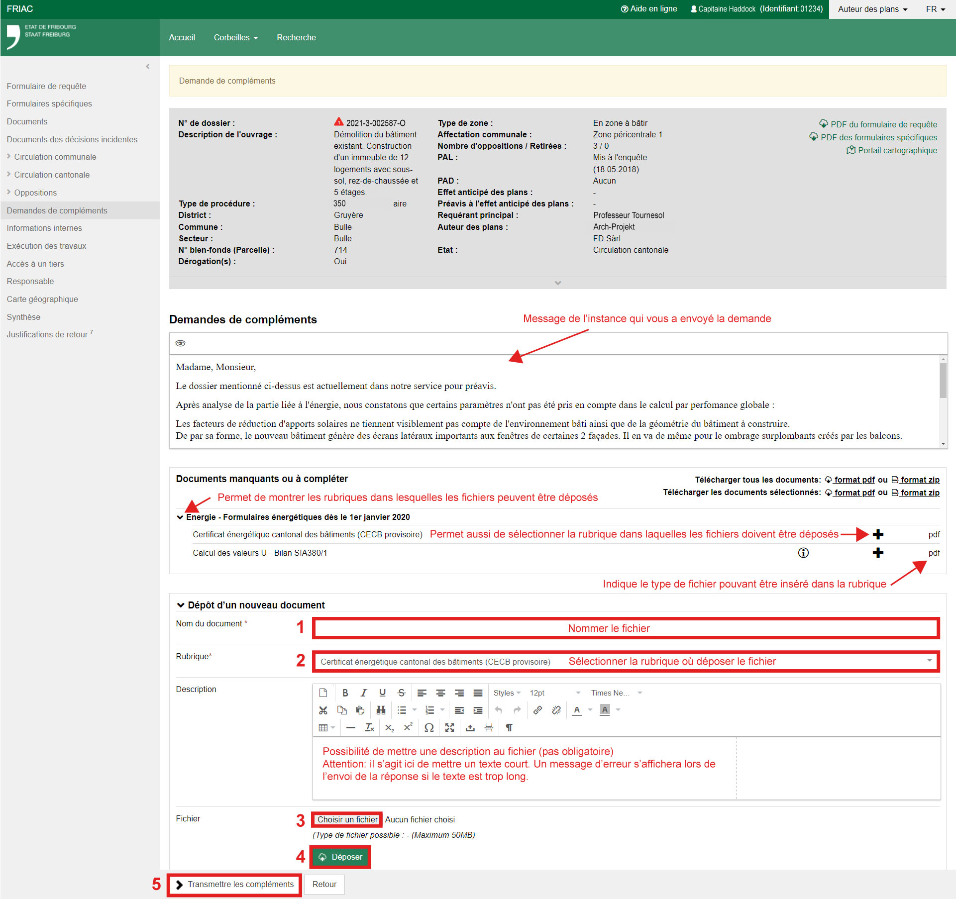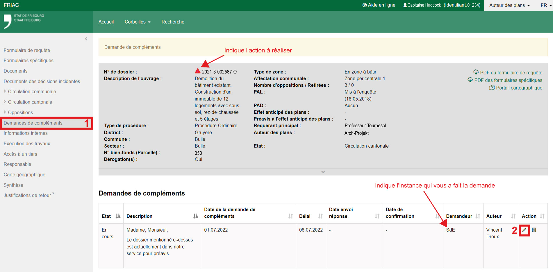 La demande de compléments est une requête faite à l'auteur des plans (ou à la direction des travaux) par une entité (Commune, Service, Préfecture) désirant avoir des informations supplémentaires pour un dossier FRIAC. Très souvent, il s'agit d'une demande de dépôt de documents complémentaires.