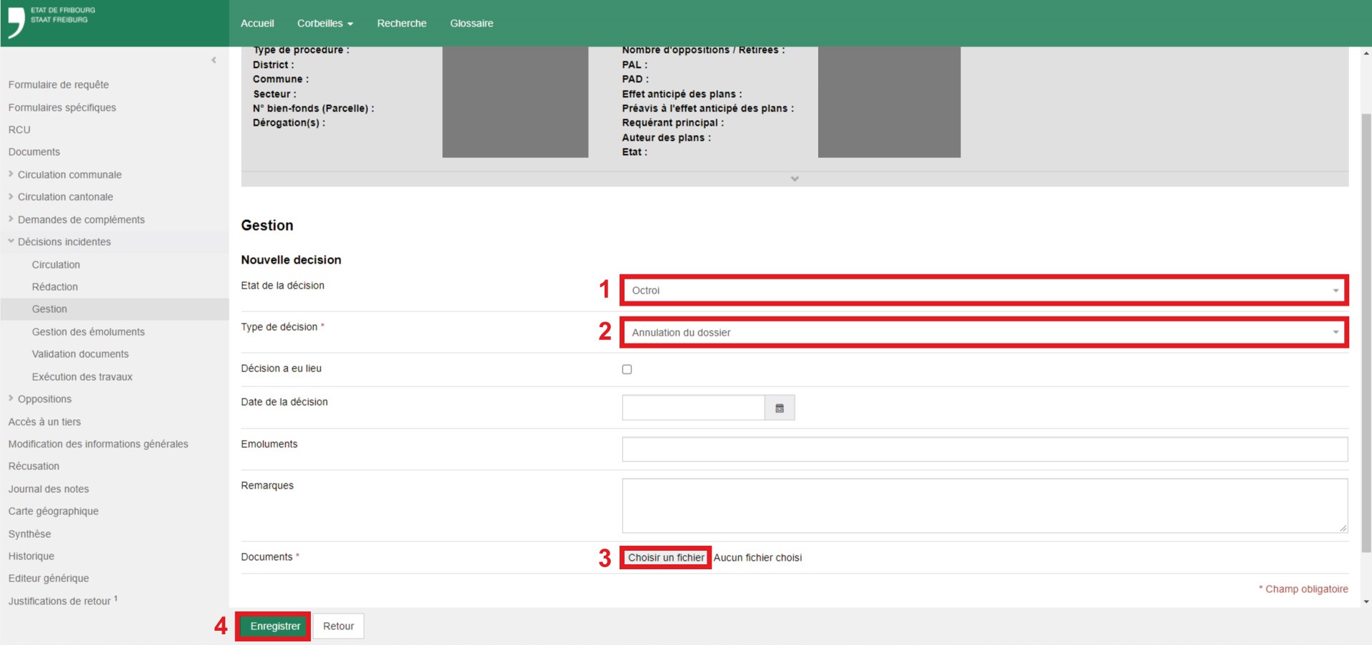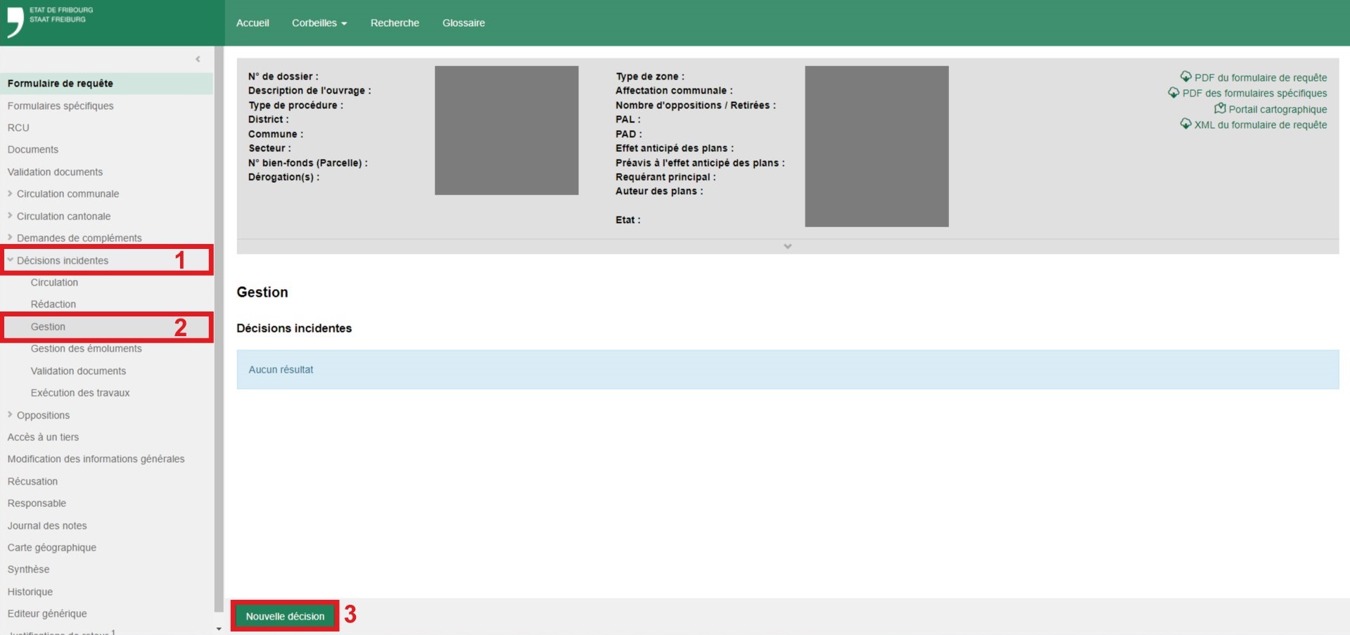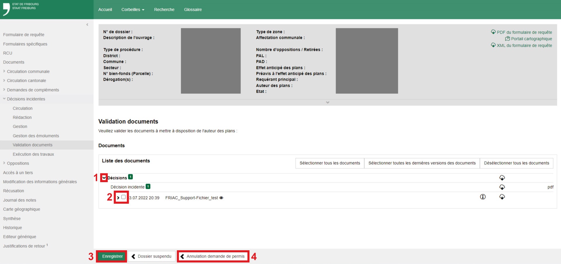 - Demande préalable (P) → Commune⚠ Si la demande préalable est au SeCA, la commune devra lui demander de l'annuler en écrivant à seca@fr.ch.