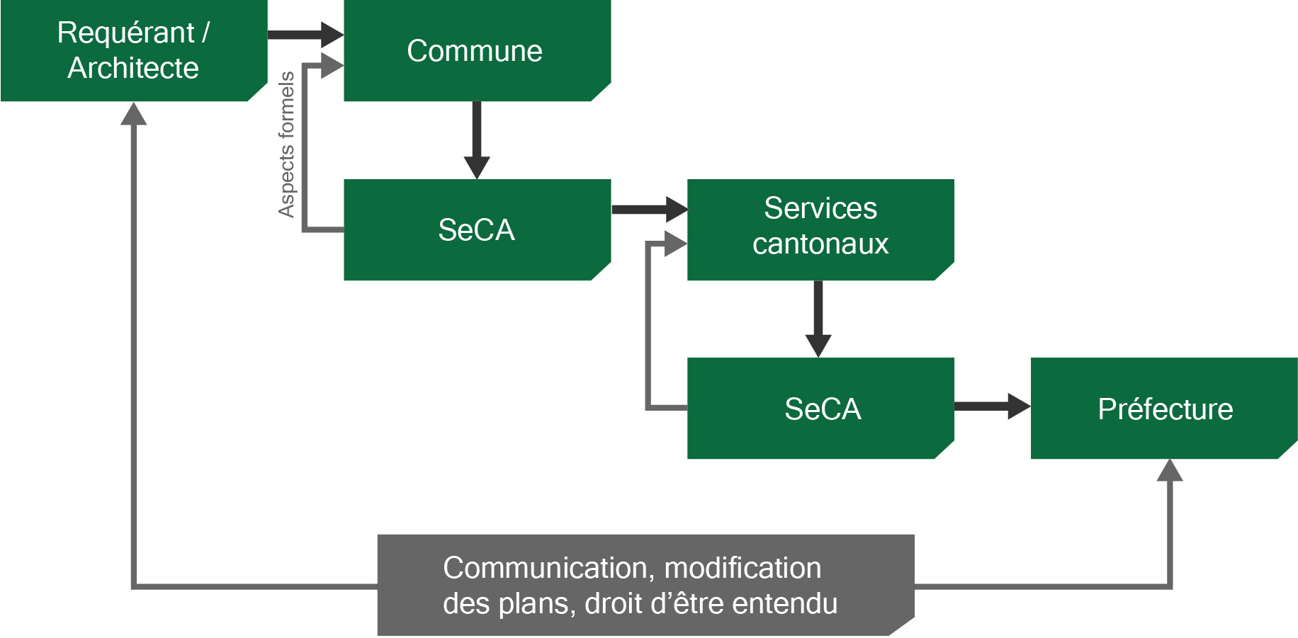 - lorsqu'une prescription du règlement communal d'urbanisme le prévoit (p.ex. pour les constructions hors zone à bâtir, pour les projets portant sur des objets protégés ou situés dans des zones ou périmètres de protection).