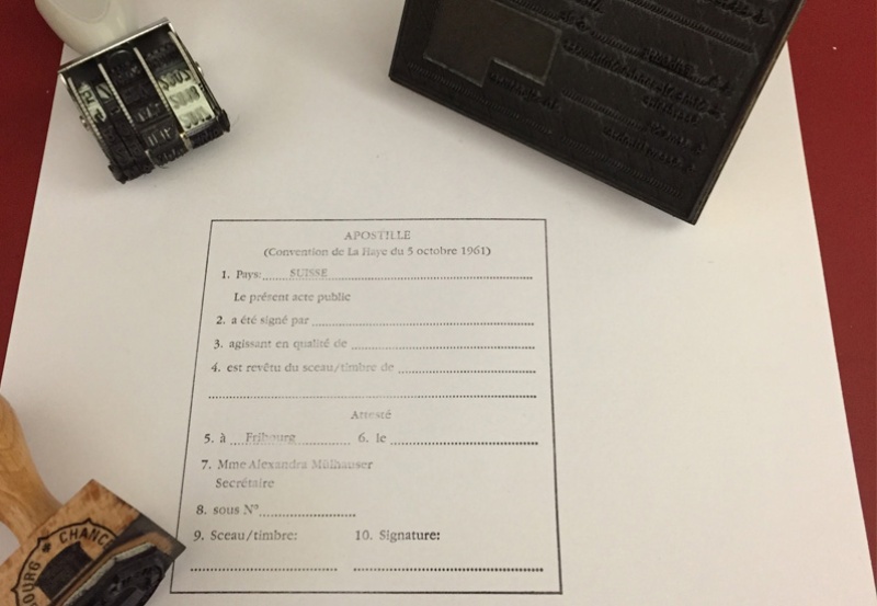 La Chancellerie d’État légalise les documents signés par une autorité, une administration publique ou un notaire fribourgeois, tels que :