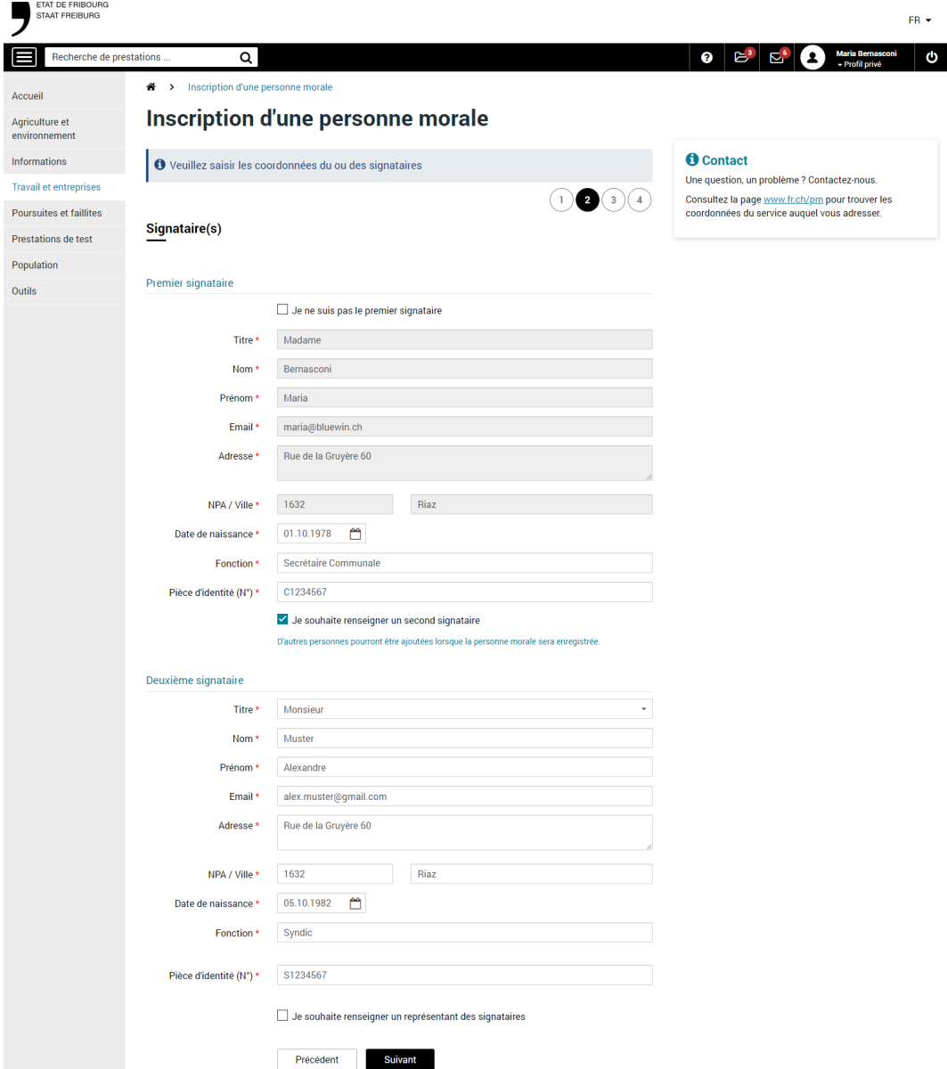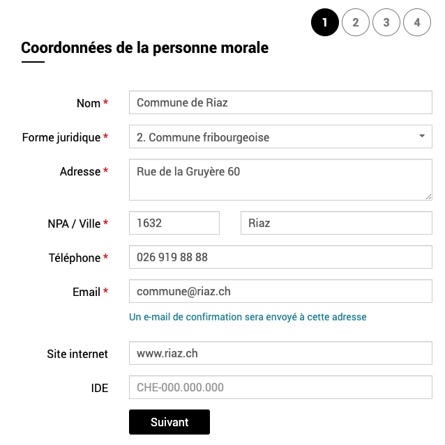 Agrandir Capture d'écran de l'étape Coordonnées de la personne morale pour les communes © Etat de Fribourg - Staat Freiburg